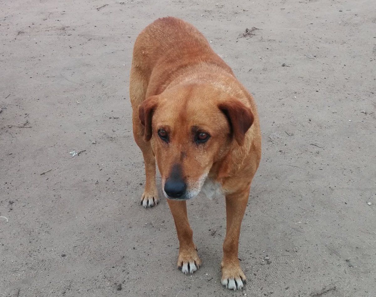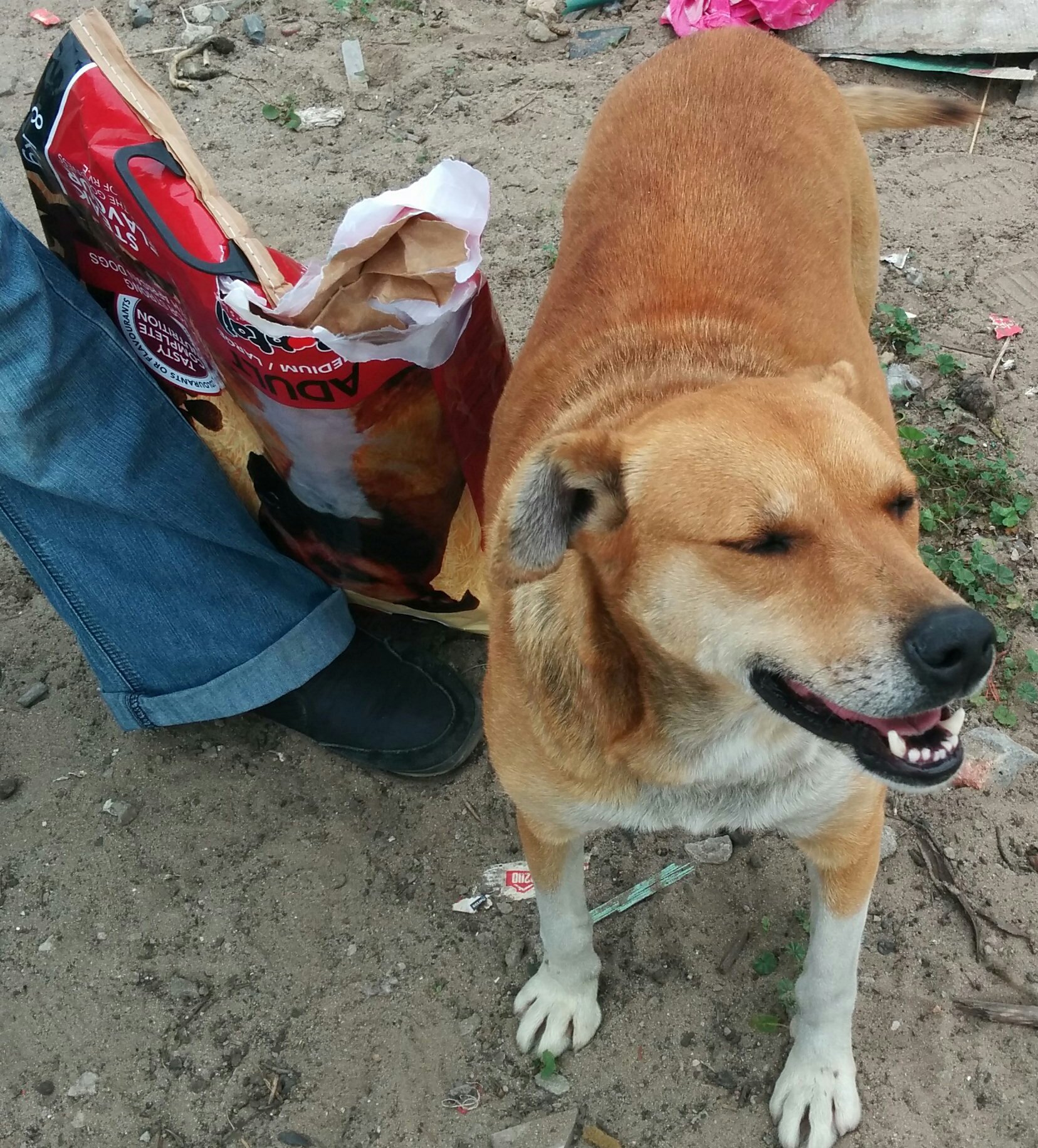 Lady is the friendliest of the dozens of dogs abandoned in Skandaalkamp, an informal settlement that has been dismantled over the past week. She's a short slightly plump mongrel, almost entirely brown, but with a white muzzle and paws. She's one of those dogs that seems to permanently smile.