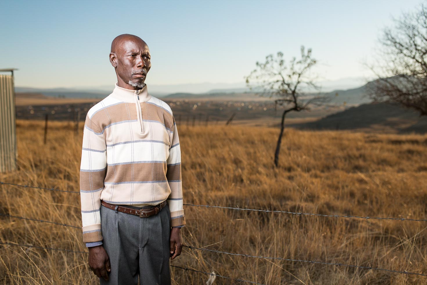 Alloys Mncedi Msuthu (60) standing in a field in Matatiele, Eastern Cape. He is an applicant in a court case brought against 32 gold mining companies. He worked in mines for over 30 years and has silicosis. He has received R60,000 compensation.
