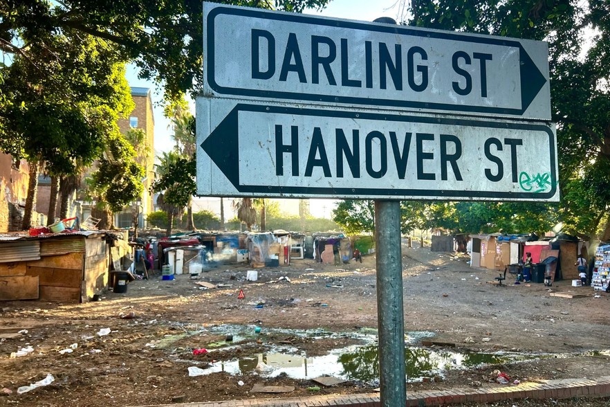 About 30 people living inside the three-storey building on 104 Darling Street, and dozens more living in an informal settlement in the propertyâs parking lot faced eviction. Photo: Matthew Hirsch