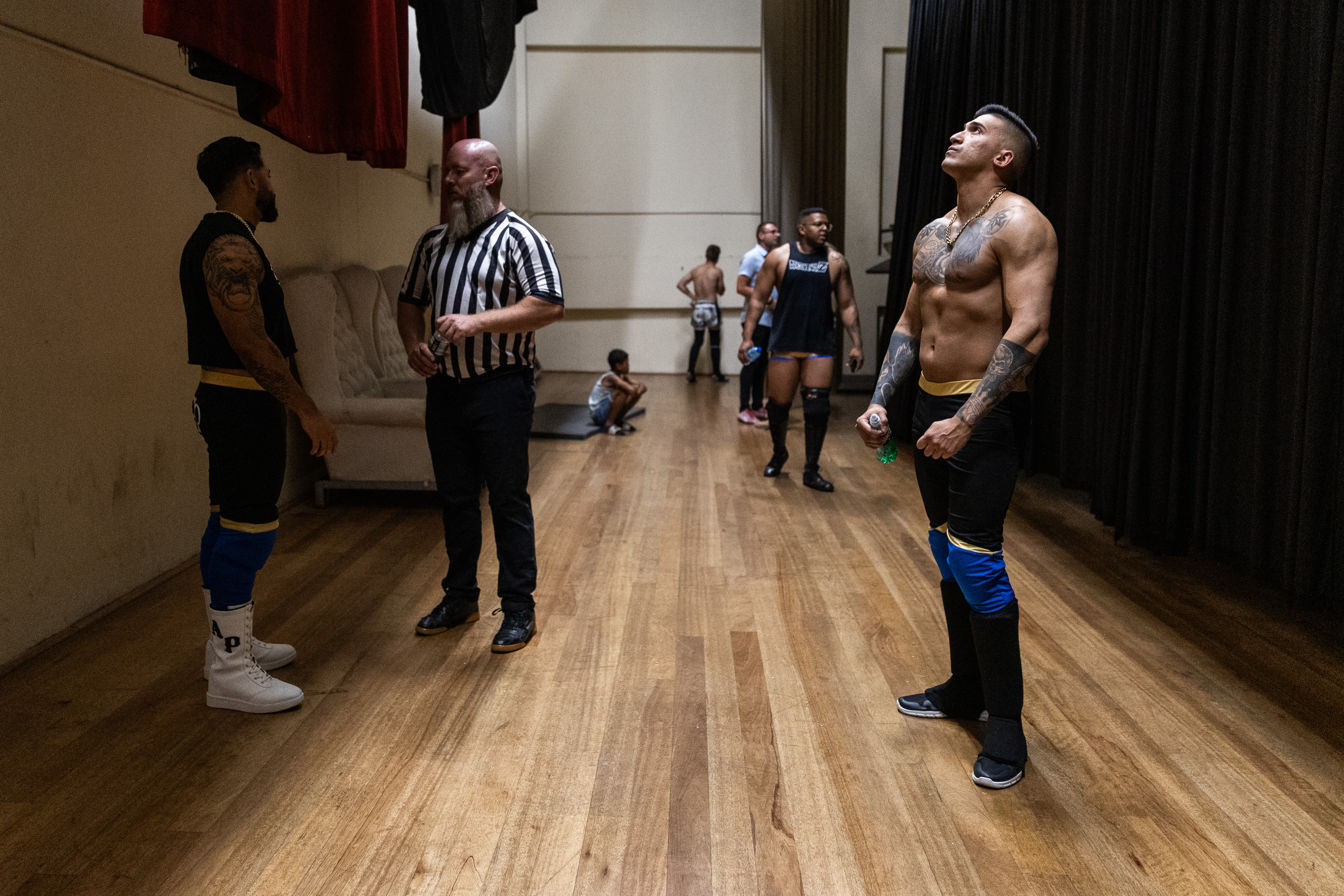 Alex Prince and Chad Lebron wait backstage before they enter the ring to fight for the new AWA tag team championship belt.