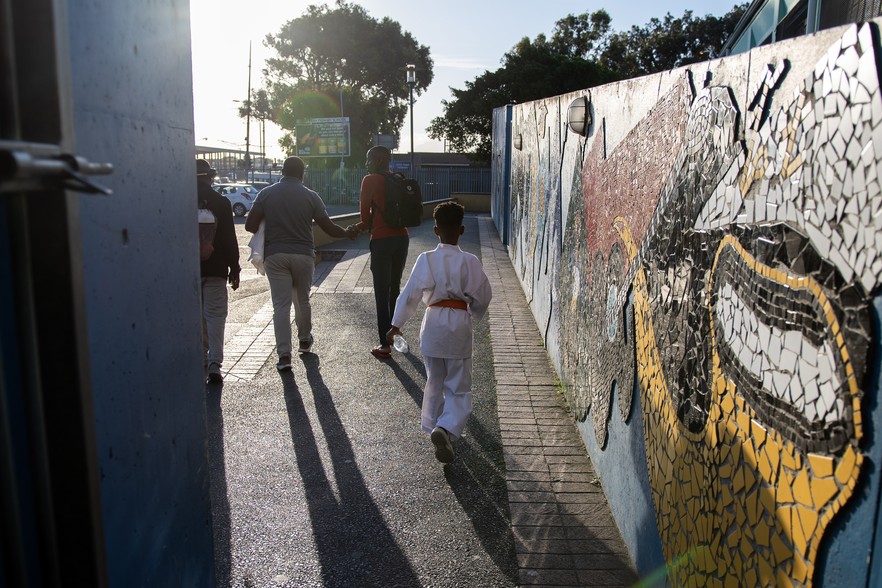 A boy leaves the Zolani Centre after a Goju Kai karate session.