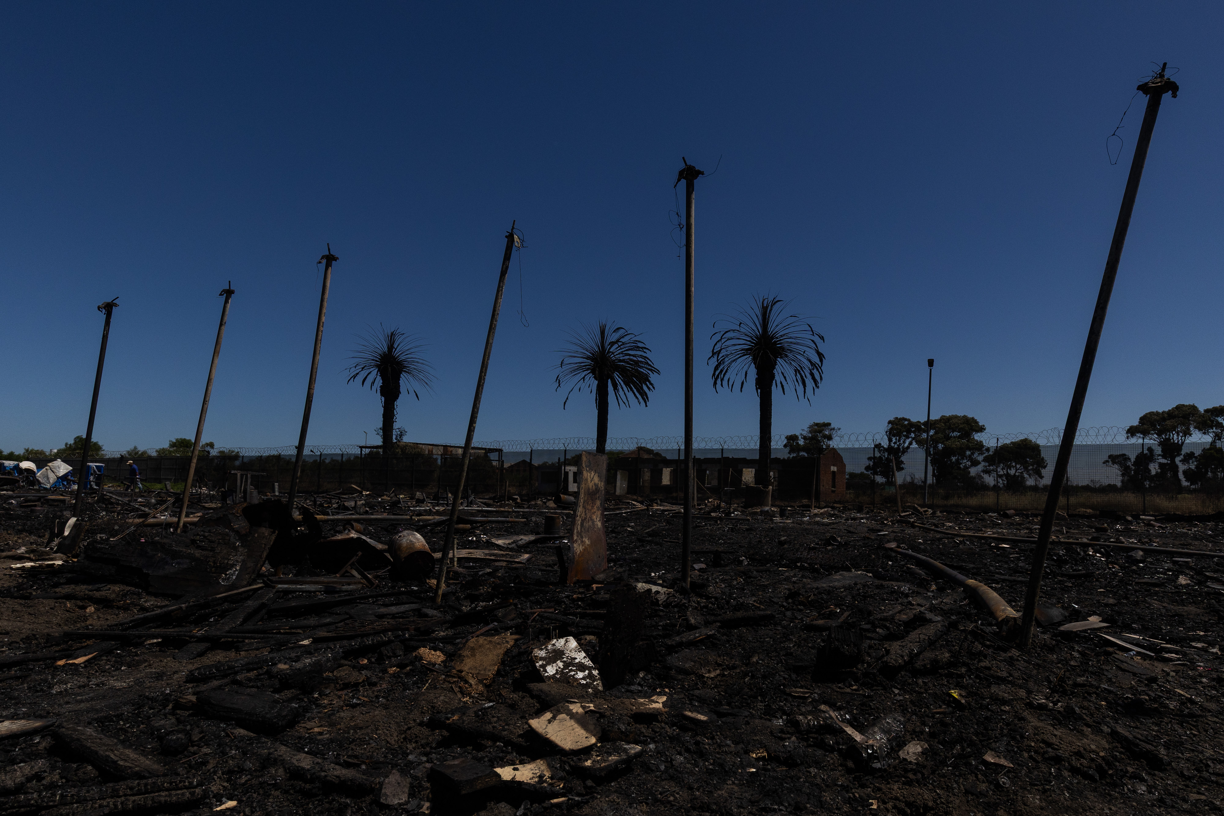 The marquee tent housing a group of refugees at Wingfield in Maitland, Cape Town, since 2020, has been destroyed in a fire that broke out on Thursday.