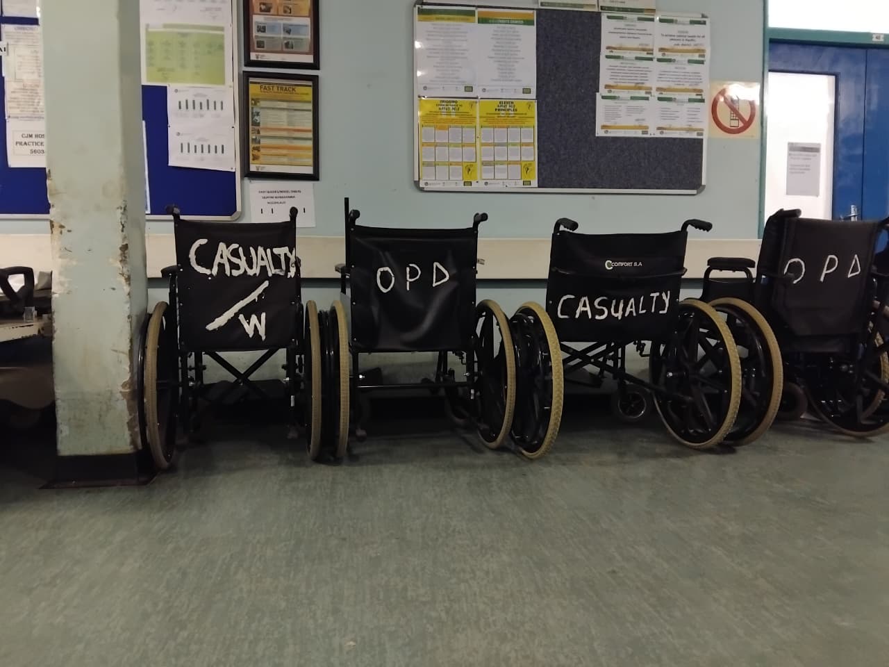 Wheelchairs lined up in the casualty ward at Nquthu hospital. Photo: Bongane Motaung