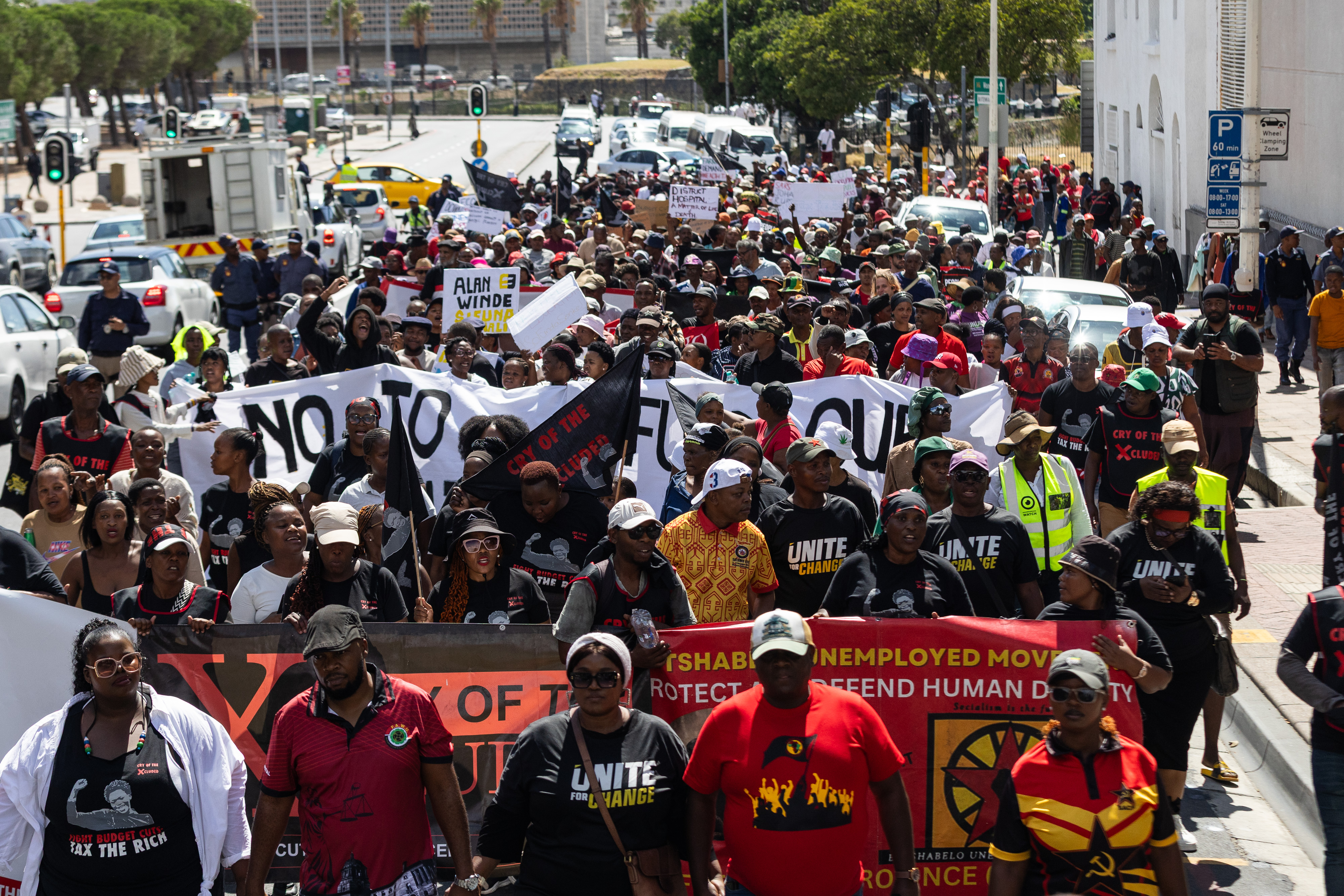 Hundreds of people protested outside Parliament ahead of the budget speech. Photo: Ashraf Hendricks