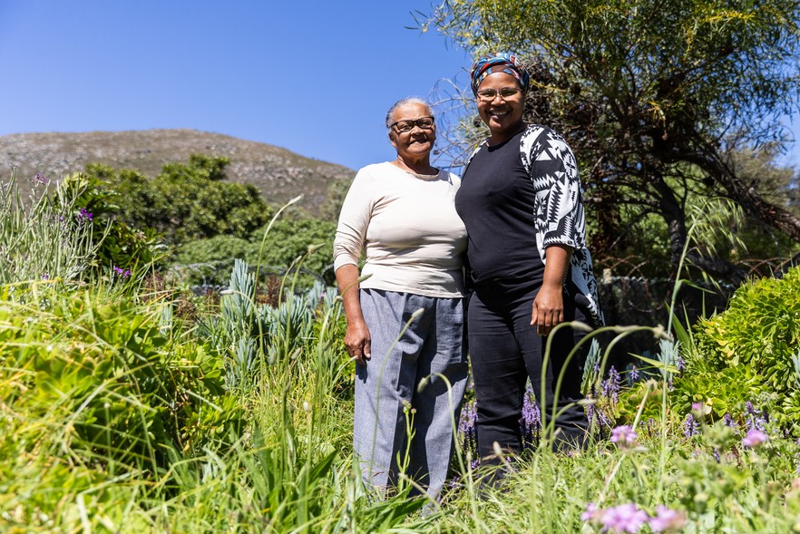 Christien Coetzee and her daughter Christelle Olyn in their garden on the smallholdings.