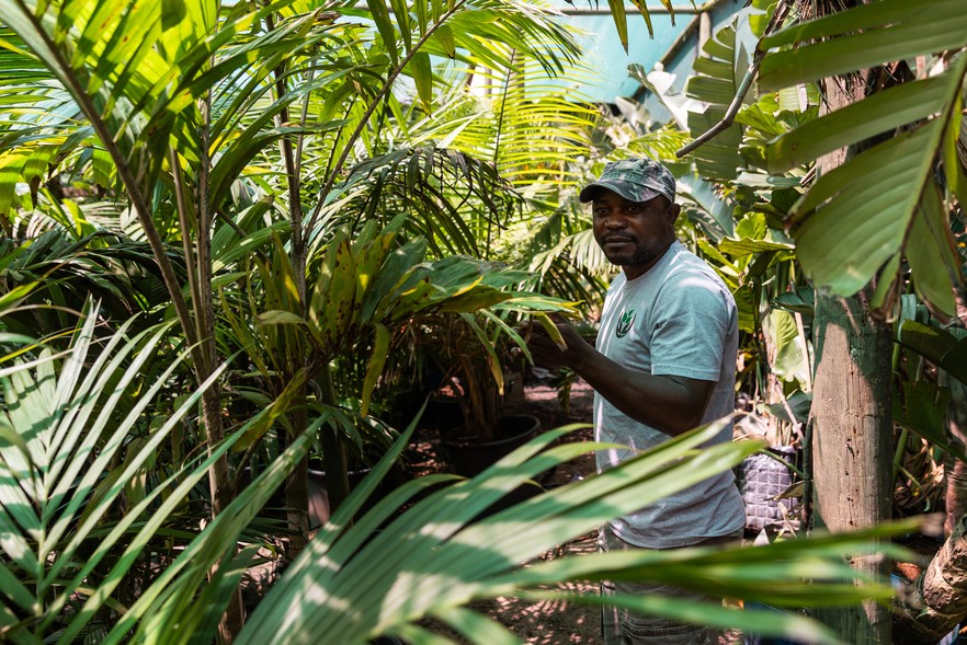 Kudakwashe Moses Siyapeya runs a nursery that provides plants for film sets.