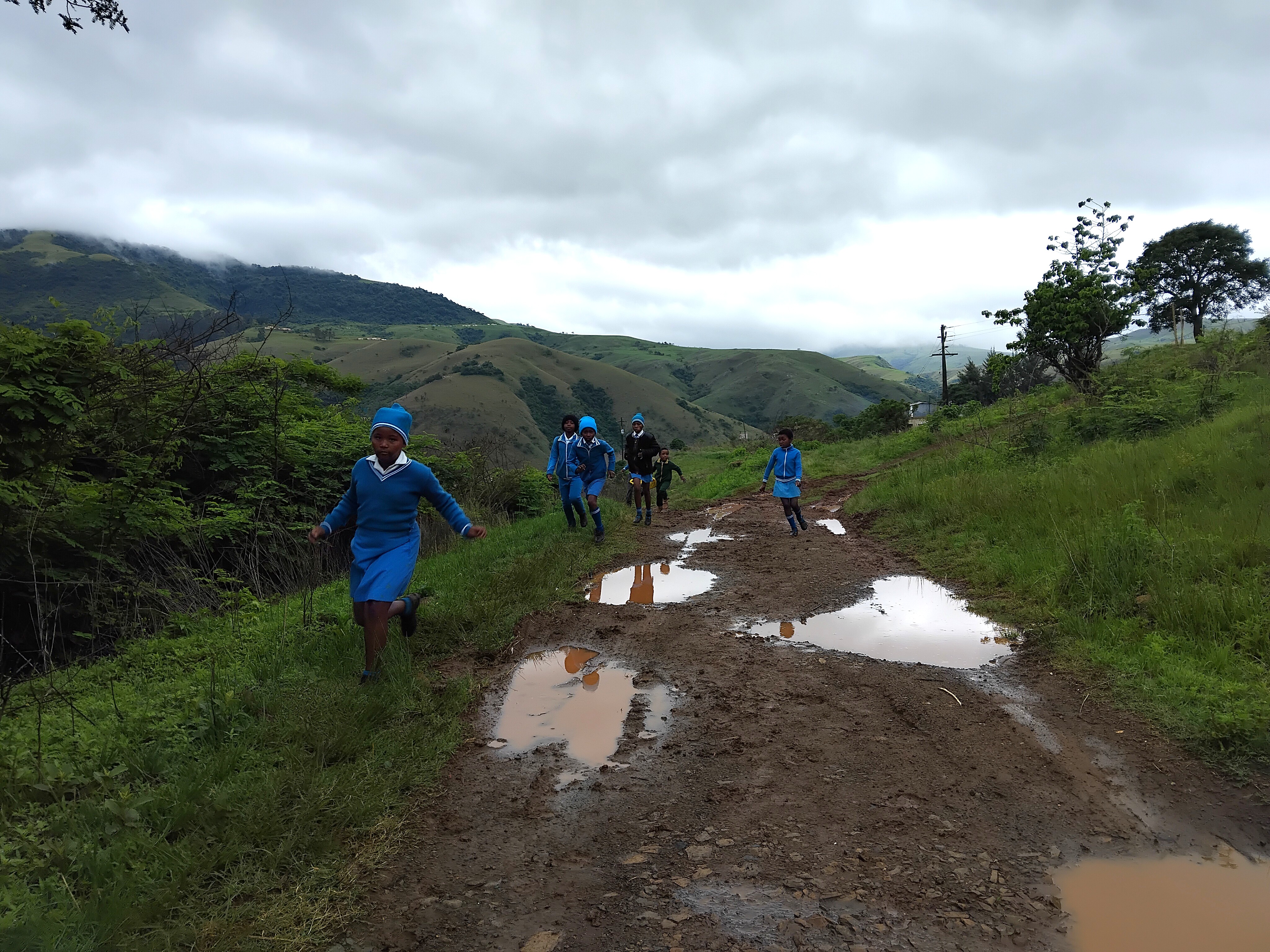 When it rains, roads are unsafe and scholar transport doesn’t operate. Children from Skhwane village need to walk about 15km to school. Photos: Bongane Motaung