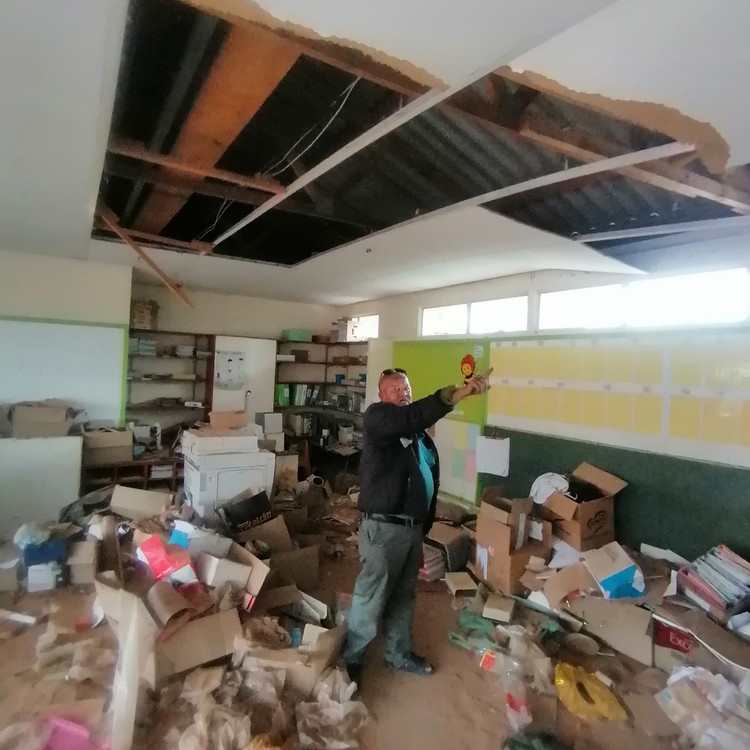 On 18 March 2026, a ceiling collapsed in a grade 1 class. “Luckily the class was at the tuckshop when it happened.”