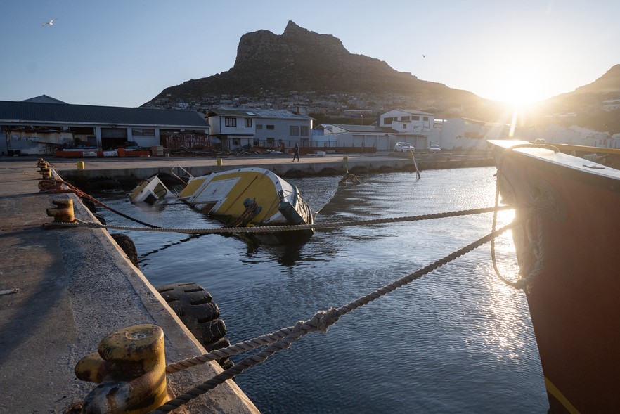 With the fishing industry in decline, boat owners and fishing businesses are unable to maintain vessels. Many, like this one in Hout Bay, lie submerged along the quay. Fishers say the government has forgotten about them and has let critical harbour and port infrastructure collapse. But the fisheries department is currently fixing small harbours in the Western Cape and salvaging sunken vessels. Photos: David Harrison