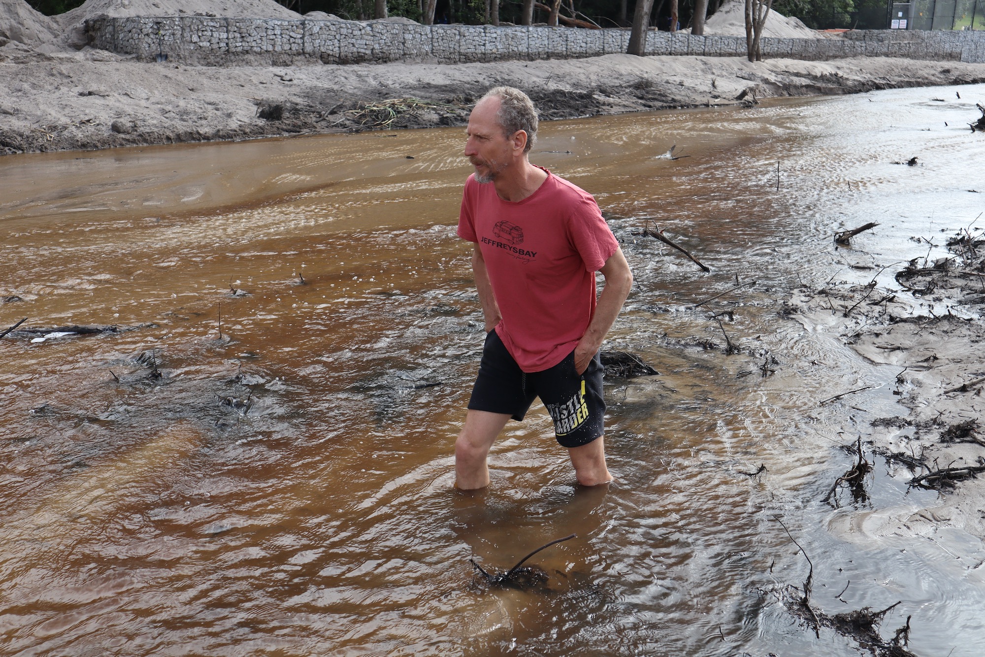 “Millions of tonnes of silt were shifted but all of that work was undone by another massive storm in July 2024,” says Kruger, and, as if on cue, he sank up to his hips in the silted river channel.