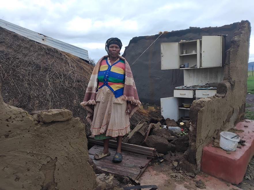 Mahadi Mosea’s thatched roof was torn off by the strong winds. She says the roof and all her furniture are beyond repair.