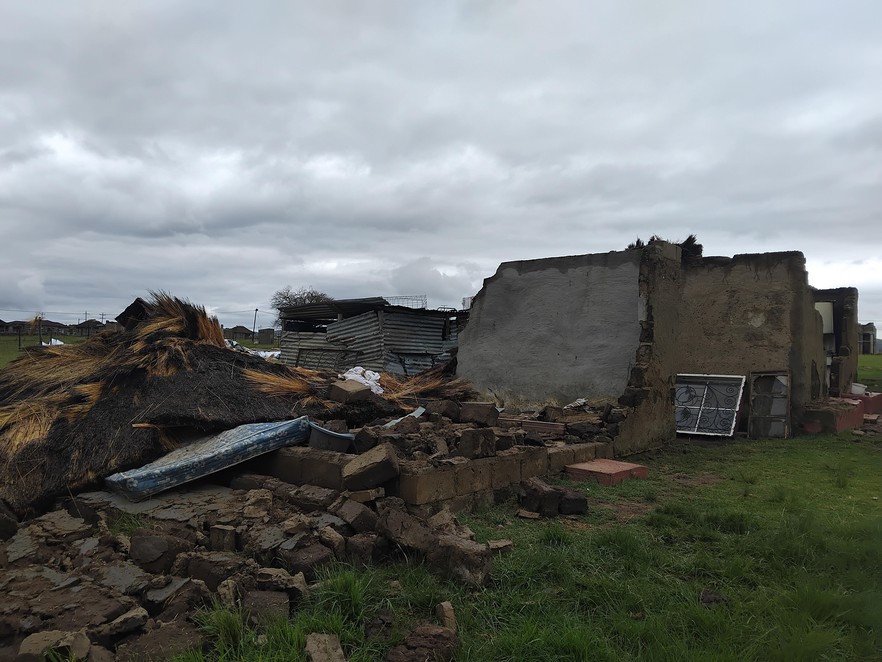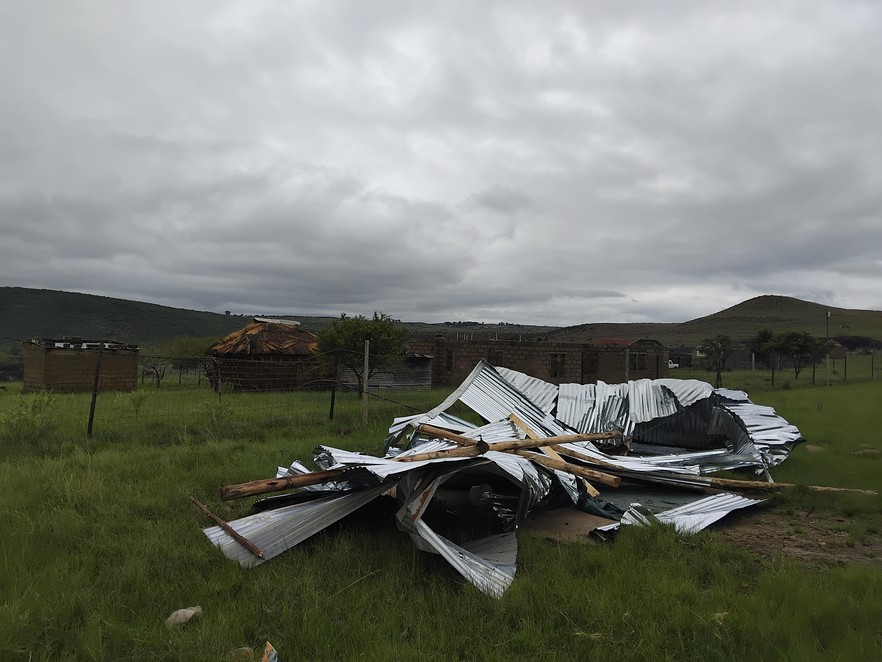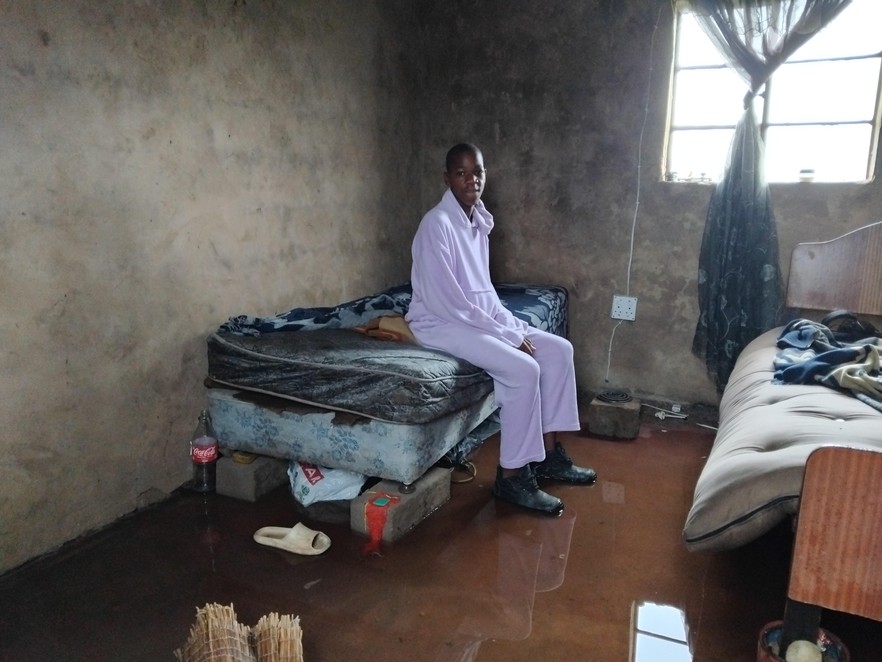 “We were so scared, and the door of the house refused to open because we had locked it with a nail. Suddenly, it became very dark, a strong wind blew, water streamed into the house, then I saw the corrugated iron roof blowing off, and the electricity was also cut,” said Mbatha.