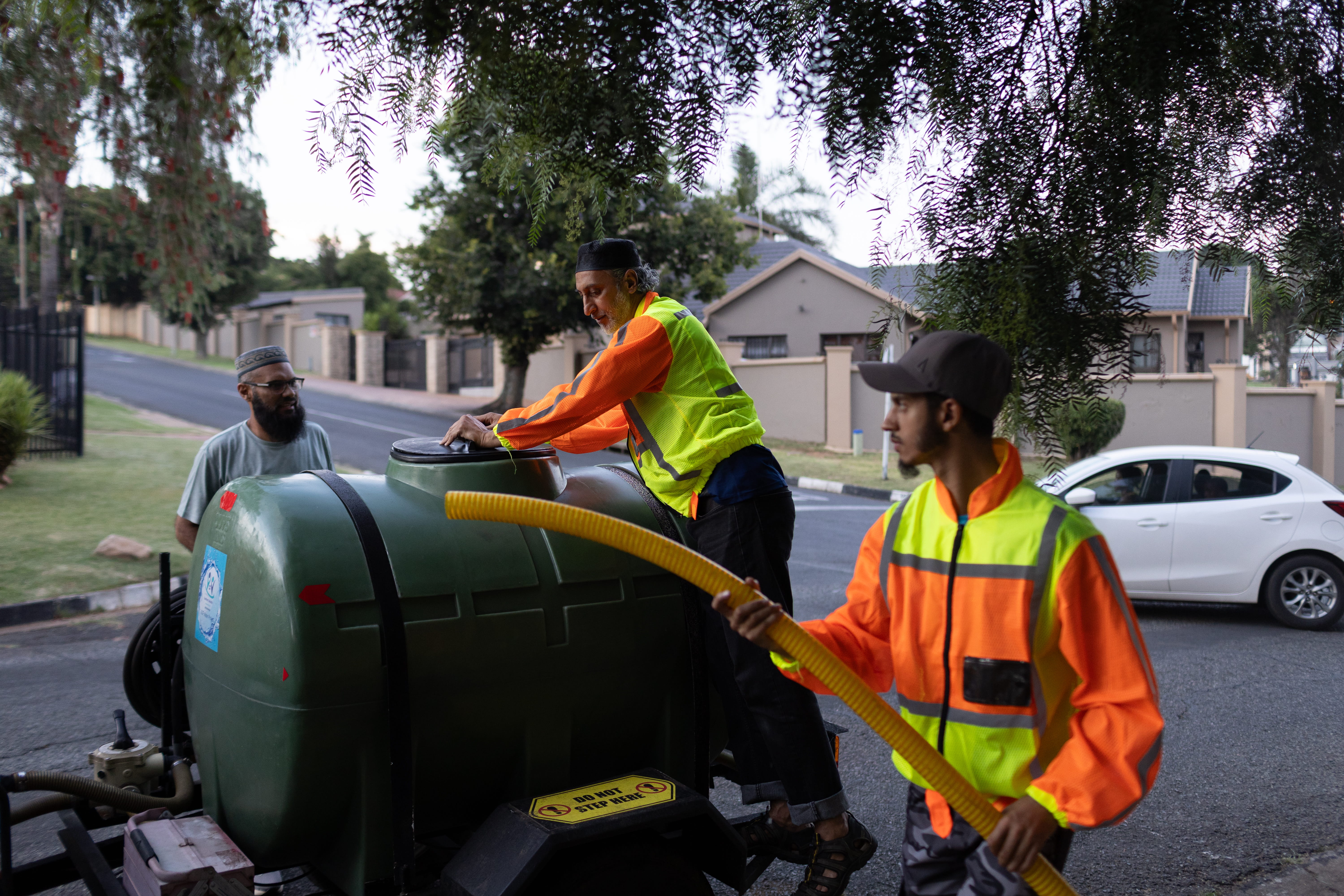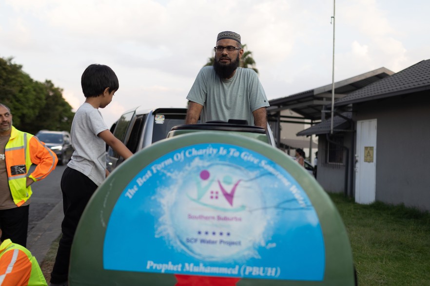 In Ridgeway, south of Johannesburg, Zubair Patel watches as water flows into a mobile 1,000-litre tanker. Printed on its side is a simple message: “The best form of charity is to give someone water” - a quote attributed to the Prophet Muhammad and the reasoning behind the community’s water distribution project.