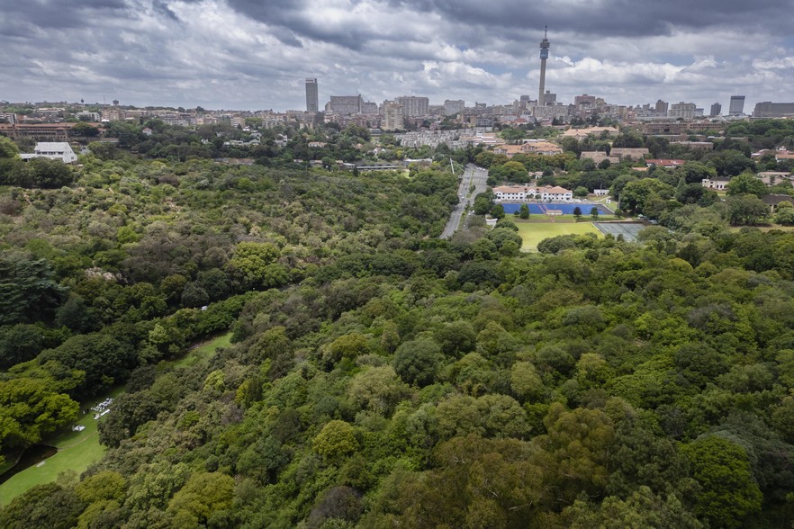 A view of The Wilds looking towards Hillbrow and the Johannesburg CBD. The 16-hectare park is separated by Houghton Road into The West Wilds and The East Wilds.