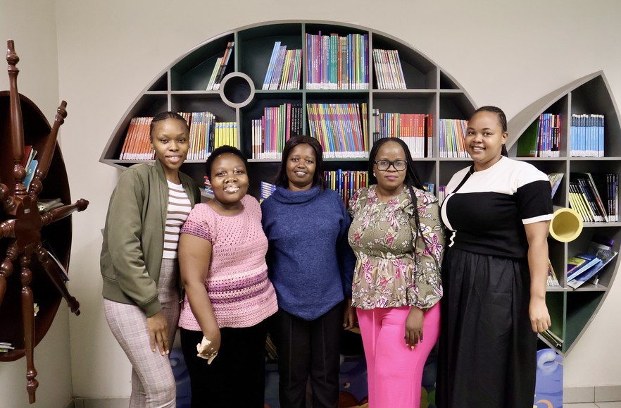 Librarians in the children’s section of the KaNyamazane Public Library. From left to right: Thobeka Nkosi, Nontokozo Mazibuko, Buyi Mapanga, Dudu Mondlane and Bongokhule Mahlalela. “We have free internet and free Wi-Fi with free computers,” says Mondlane.