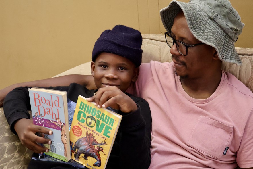 The Mbombela Public Library is a refuge for Solly Mguni and his son, Mvuso. Reading together is an alternative to social media, he says. “Our kids today, we buy them phones, we buy them tablets… they get caught up, and they lack focus.”