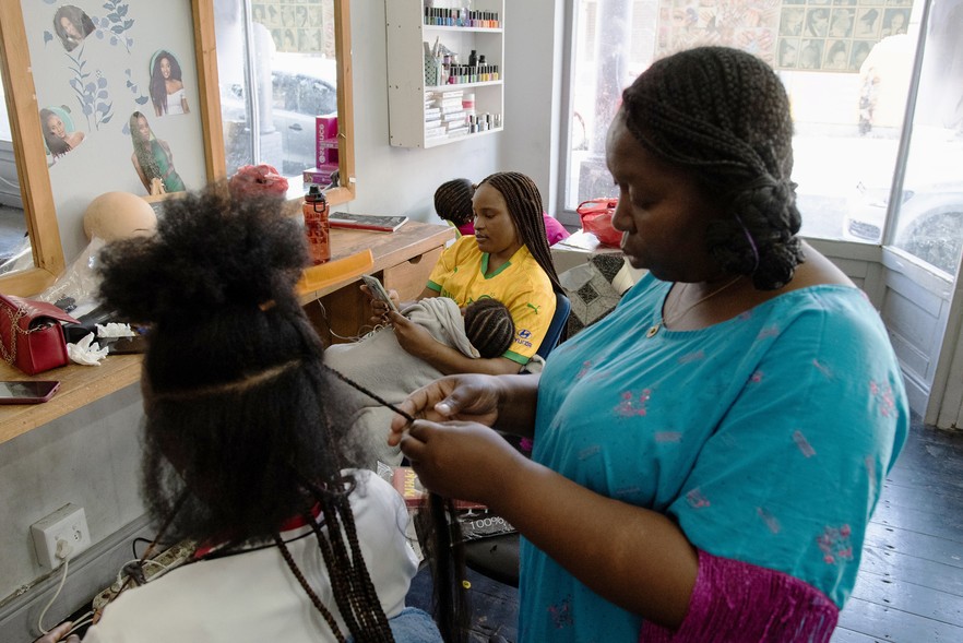 There is a buzz on the street and lots of activity around the businesses and apartment blocks. The hub attracts newcomers like Cresly Ngalula, from the DRC, who opened her beauty salon two years ago and rents out a spot to another stylist. Ngalula moved to Johannesburg in 2010 from Kinshasa with her parents and moved to Cape Town in 2018 because she had some family here.