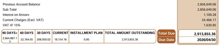 This astronomical charge was based on a recorded consumption of nearly 6,000 kilolitres, a volume a professional plumber notes is “nearly impossible” for a residential unit in a single month. The huge charges continued for months. Bot’s water bill now exceeds R2.9-million.