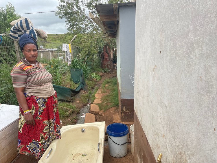 Dunoma Sabisa, a pensioner and resident for over 20 years, said her top structure was completed in 2019 but the toilet has never been connected to water. Her six grandchildren still have to use a longdrop pit latrine which is often full. She has to pay someone to empty it.