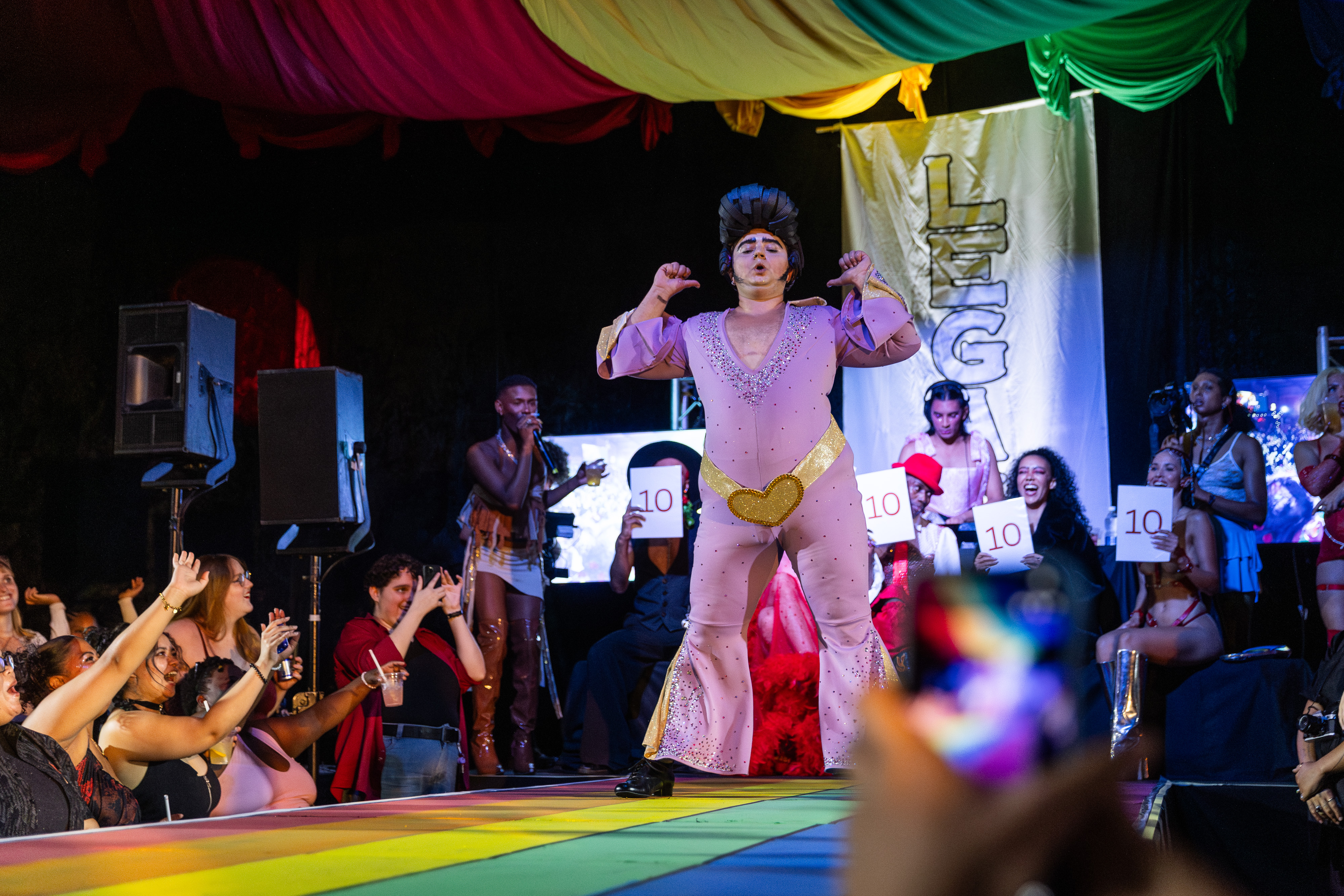 Drag king Forest Rose competes in the Best Dressed Category in an Elvis-inspired costume.