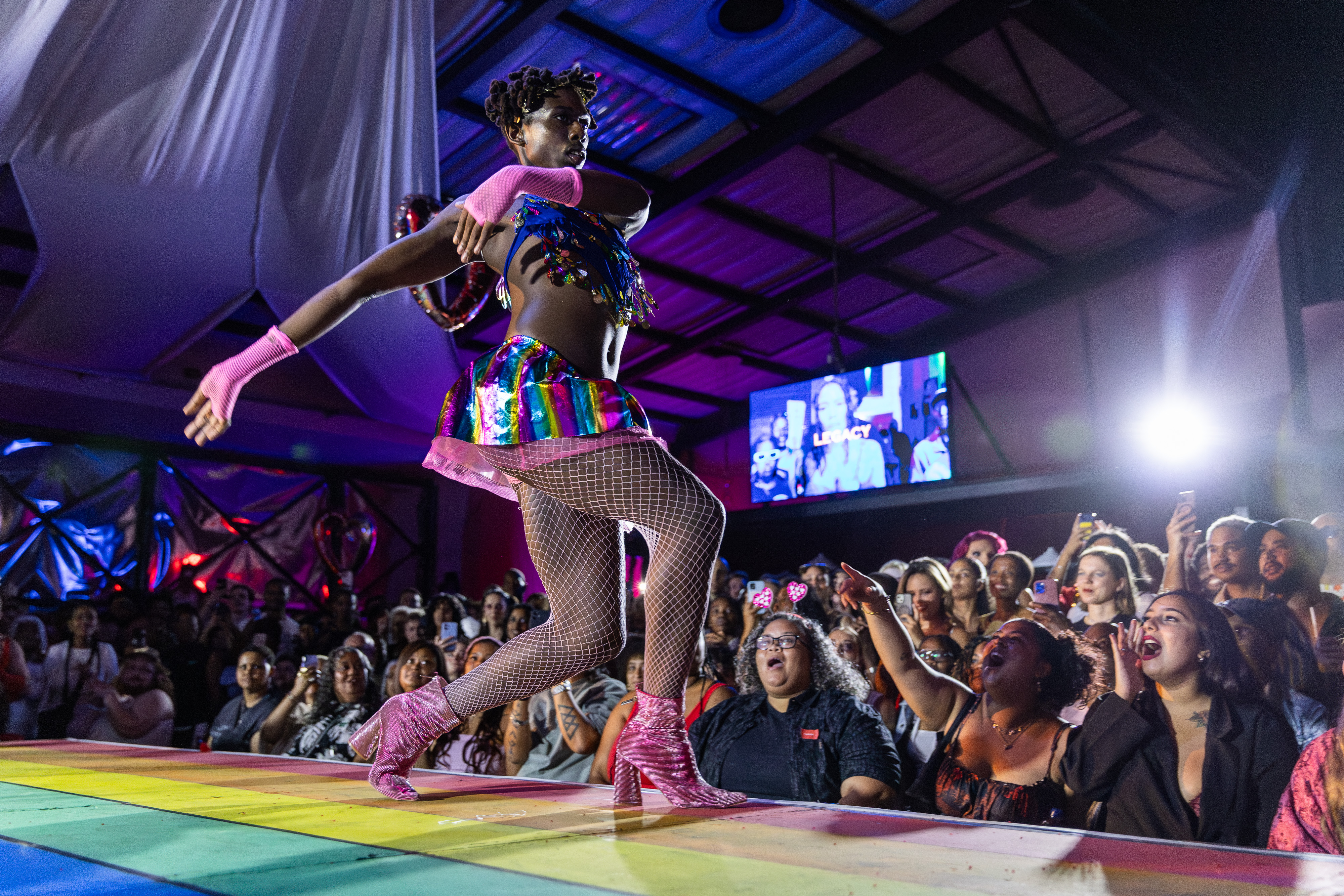 Cay Le Fay on the walkway during their Vogue Femme performance.