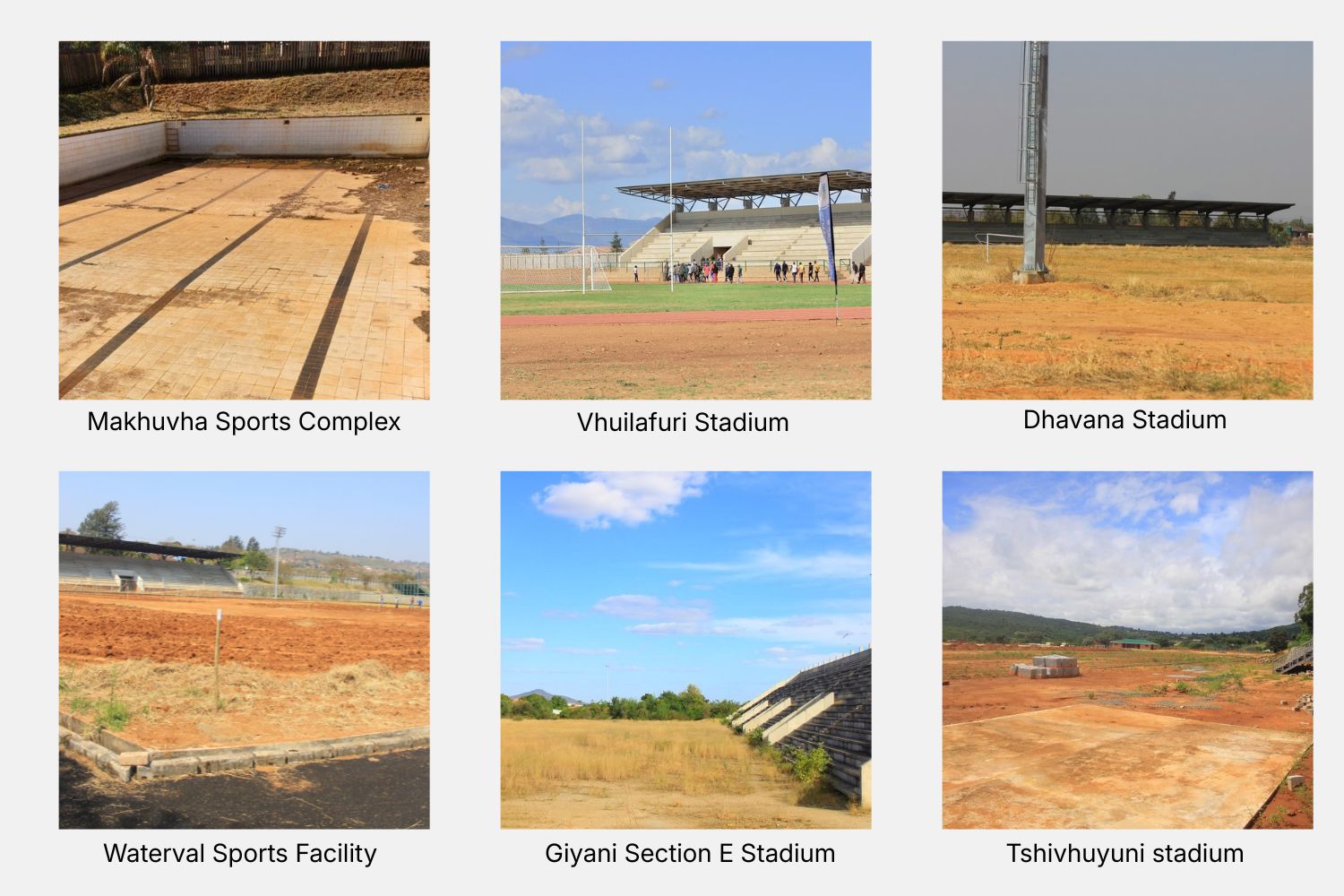 Archive photos of the unfinished stadiums by Thembi Siaga and Ndivhuwo Mukwevho.