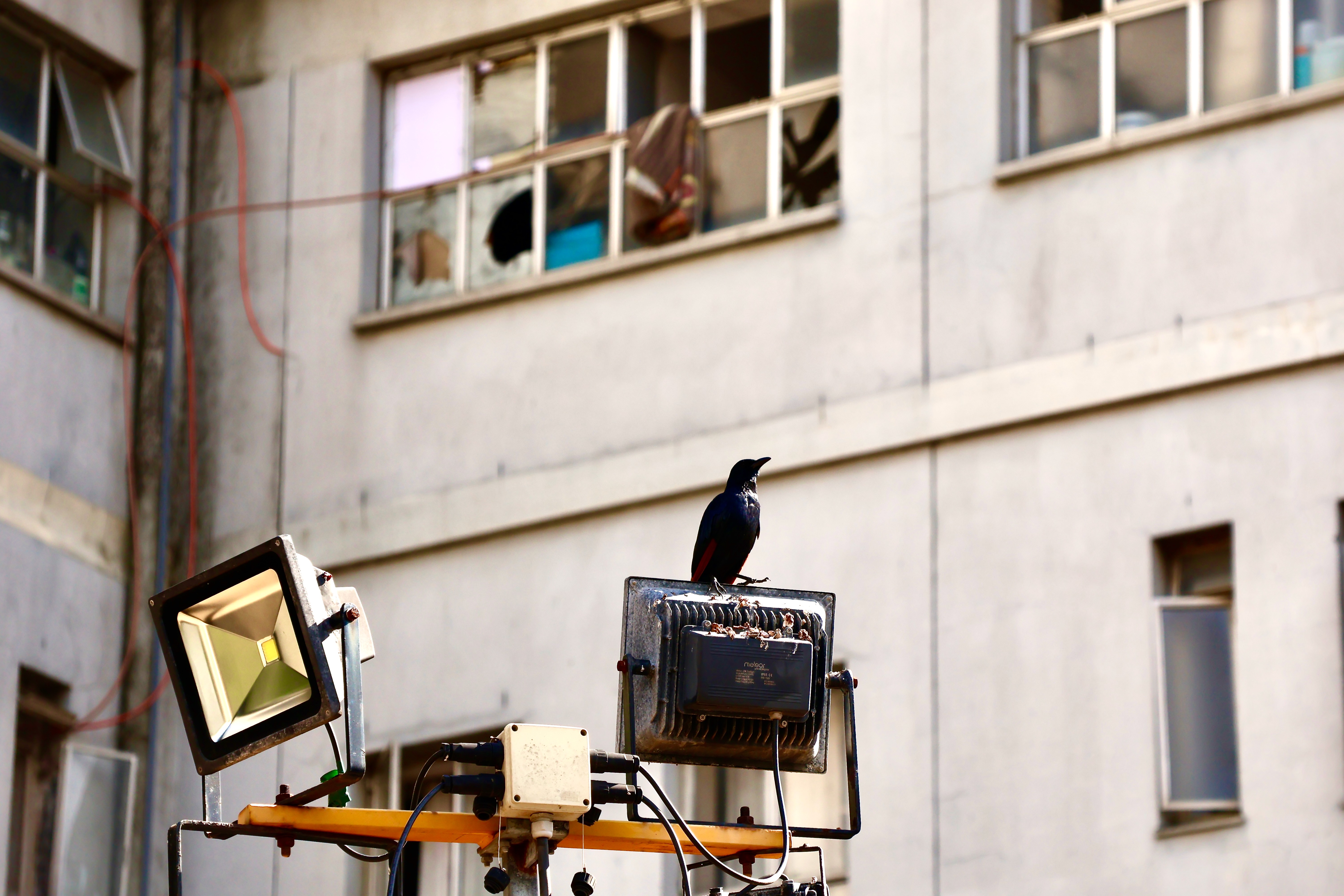 Solar-powered flood lights are used to light up the quad at night. Electricity was cut off soon after the occupation in 2017.