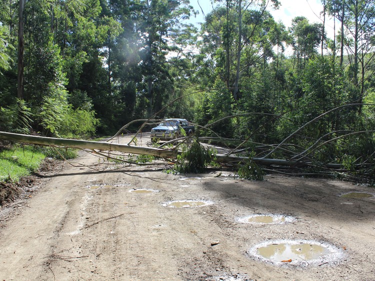 Nkandla residents blocked the road to their village with a tree during protests this week. They say this road littered with potholes and is dangerous to drive on when it rains.