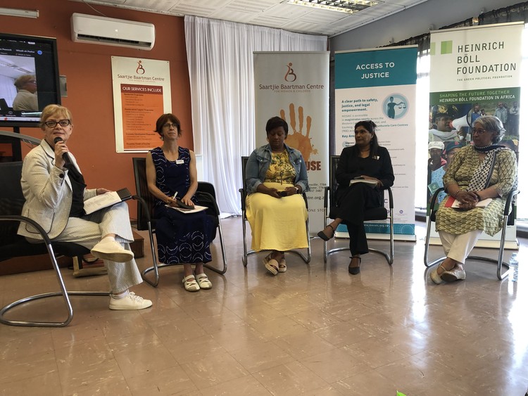 Panellists at the report launch: Bernadine Bachar, director of the Saartjie Baartman Centre, Claire Taylor from Gun Free SA, Henrietta du Preez, Jessica Shah, and Dr Naeema Abrahams from the SA Medical Research Council.