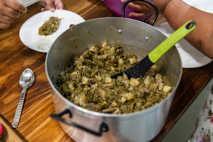Another dish served was “waterblommetjiebredie” — an Afrikaans word for stew made from edible pond weed. “We used to get the plant from the farm dam on Saturdays and eat it on Sundays,” said Hendricks.