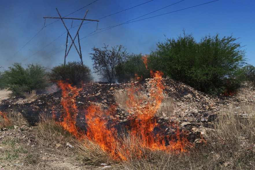 Fires at the Douglas landfill site burn the surrounding veld, threatening electricity infrastructure.