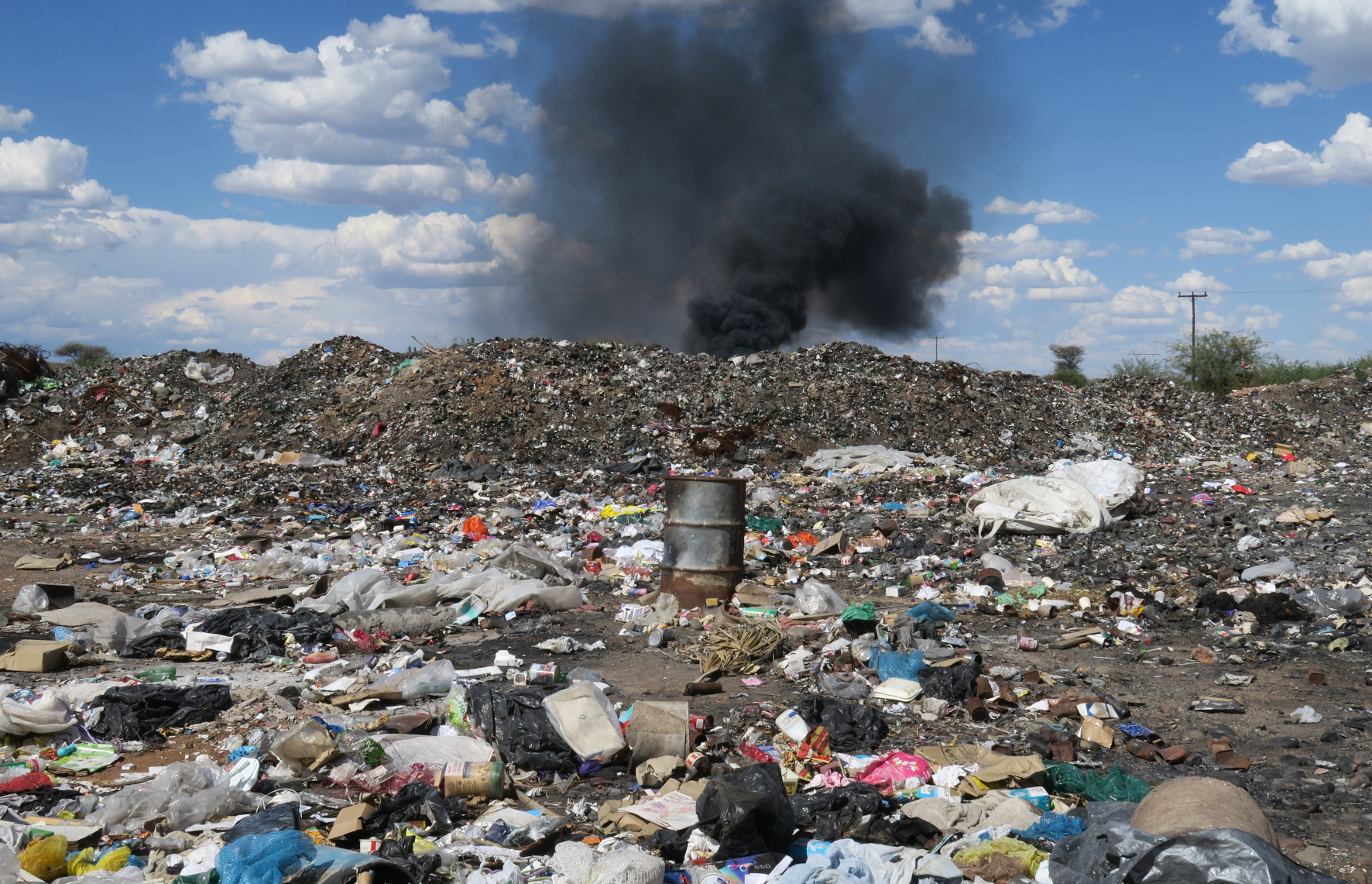 As burning bales of plastic sent black smoke into the sky, waste pickers at what constitutes Douglas’s landfill, who rely on buy-back centres to eke out a living, were not too concerned about the loss of the recycling centre.