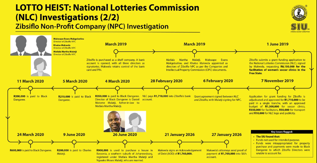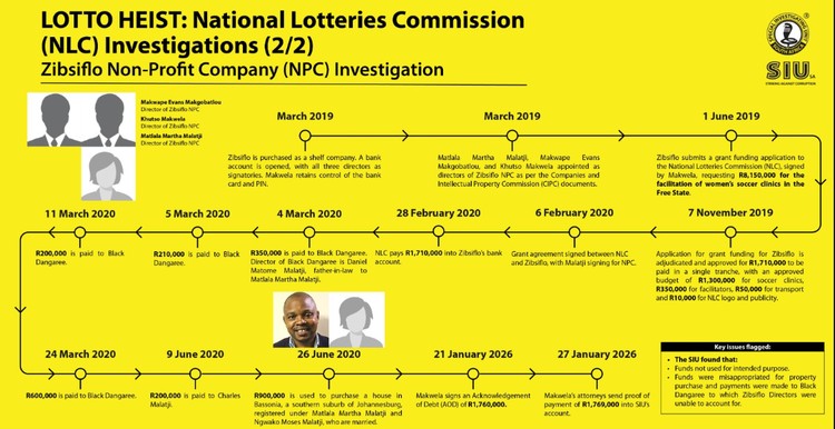 Graphics published by the Special Investigating Unit on Tuesday about questionable lottery grants. Click on the images to get a higher resolution view.