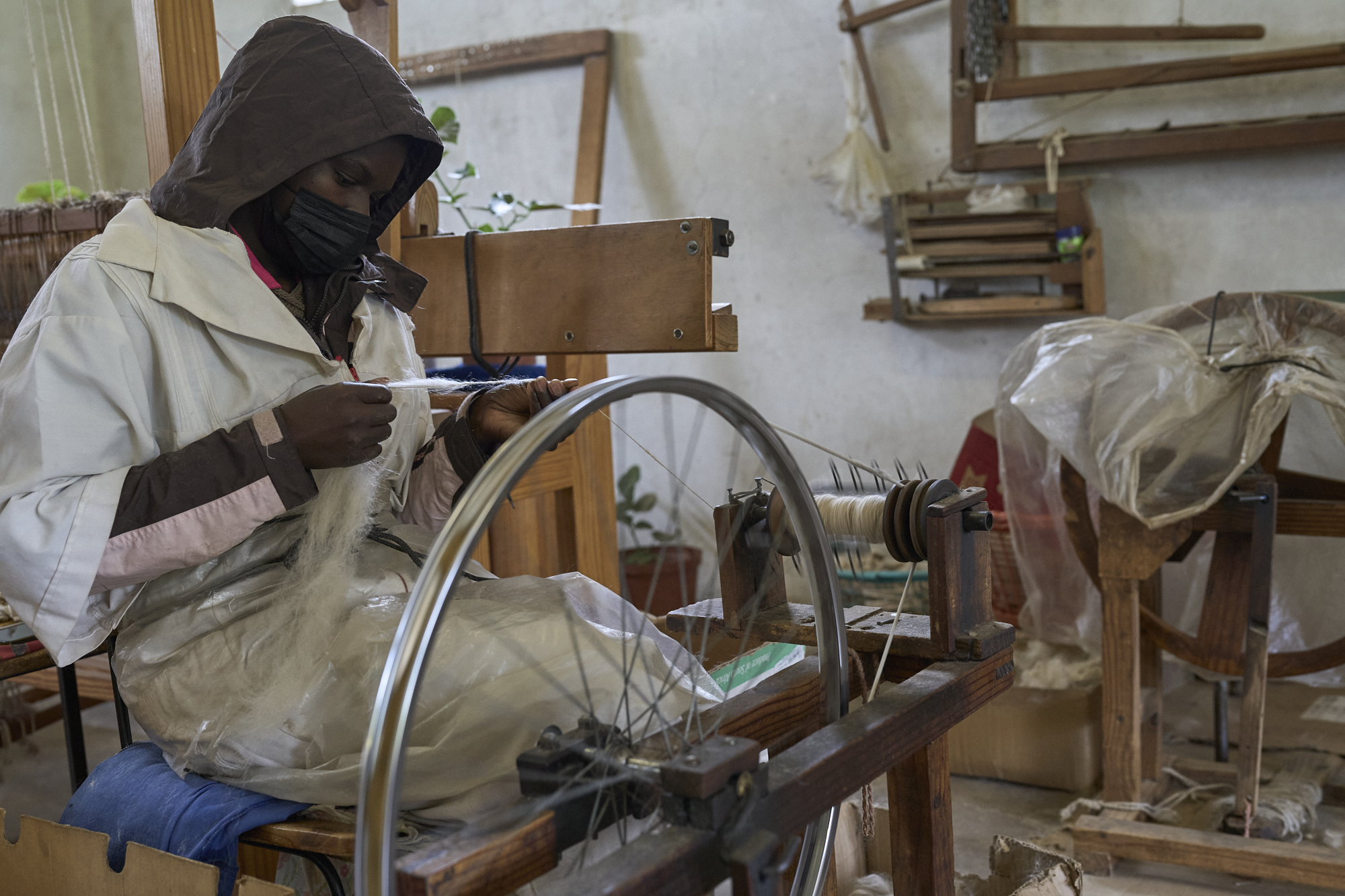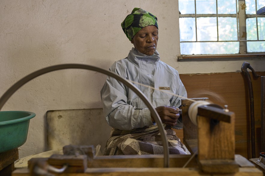 In Leribe village, the Leribe Craft Centre trains and employs 13 women who are deaf, unable to speak, or physically impaired. Inside, wool and mohair move through different stages of production. The work is both a source of income and independence for the women.