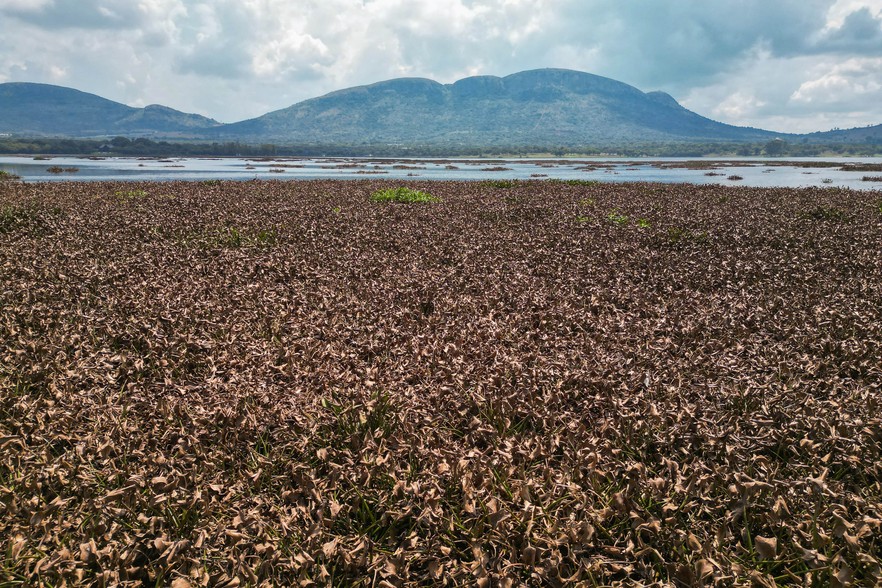 Plant hoppers are causing large swathes of water hyacinth to turn brown.