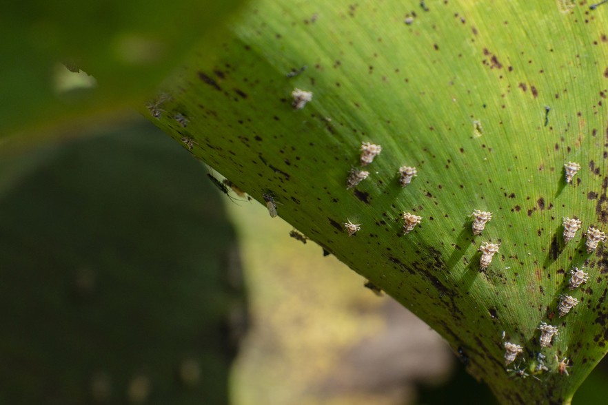 Water hyacinth plant hoppers (Megamelus scutellaris) pierce the leaves of the invasive plants, causing them to rot and lose buoyancy. Photos: Ihsaan Haffejee