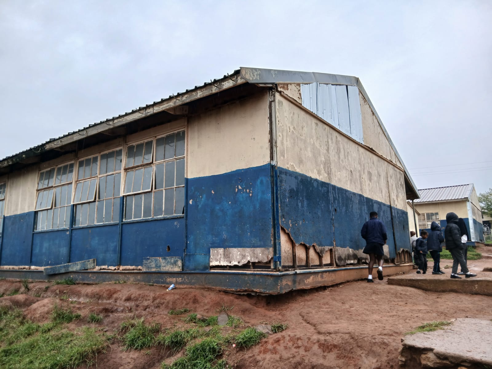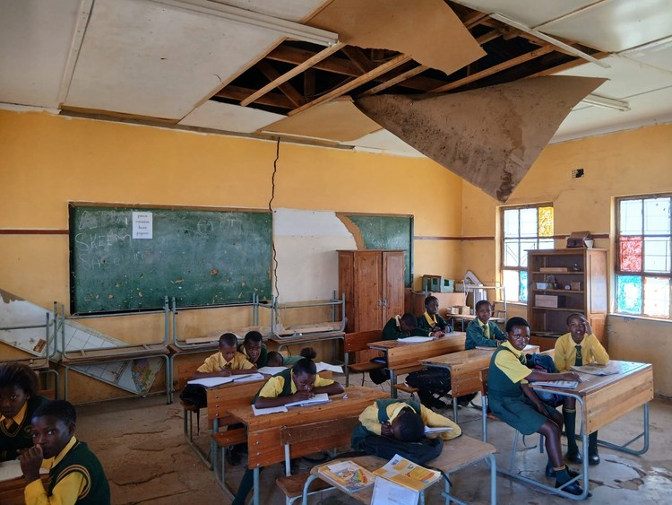 - ET Thabane Primary School in Entokozweni has 60 to 70 learners per class taught in prefabricated classrooms from the 1980s patched with zinc sheets and roofs that leak.