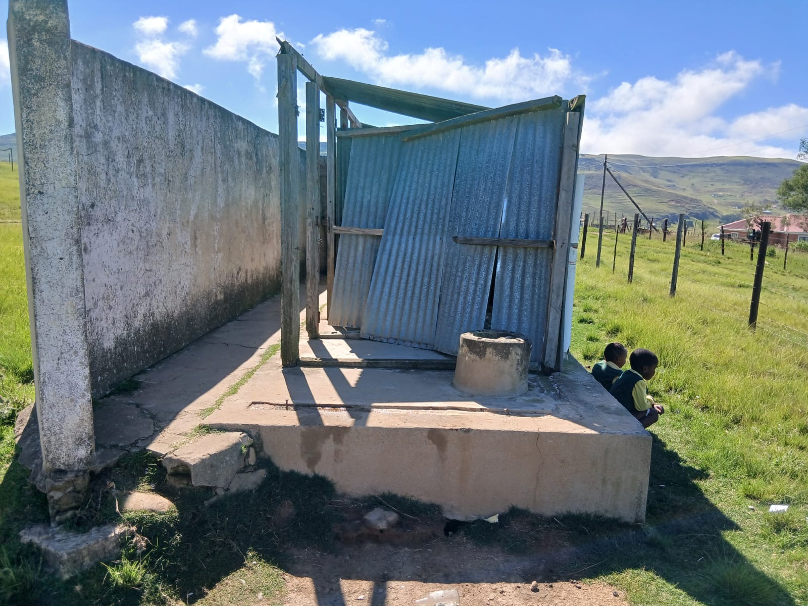 The school has 160 learners and only five usable toilets – two for boys, two for girls and one for teachers. The toilets have cement seats and are enclosed with zinc sheets. The doors are broken and parents donated money to build a wall for privacy. All the pits are full.