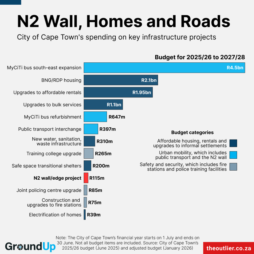 What Cape Town is spending on homes, roads and the N2 wall