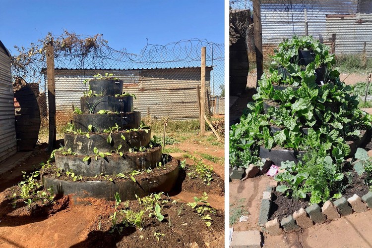 Innovative cone gardens that maximise space in Slovo Park informal settlement.