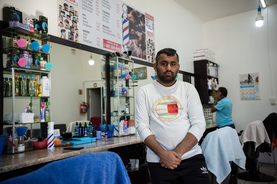 Faiz Rasool, from Pakistan, has been working at a barber shop in Park Road for over fifteen years. He lives in South Africa alone and has only been able to return home to his home in Lahore every five years to visit his family for a few months.