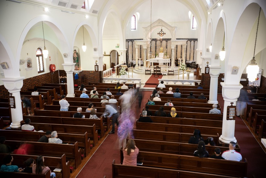 Like many Catholic churches across the country, Corpus Christi was a site of multi-racial worship during apartheid. That heritage continues today. The pastor is of Indian descent, and the congregation consists of South Africans of varied backgrounds, as well as immigrants from other African countries. A member of the church told us how he grew up in the area, playing on the local sports fields with his Muslim peers.