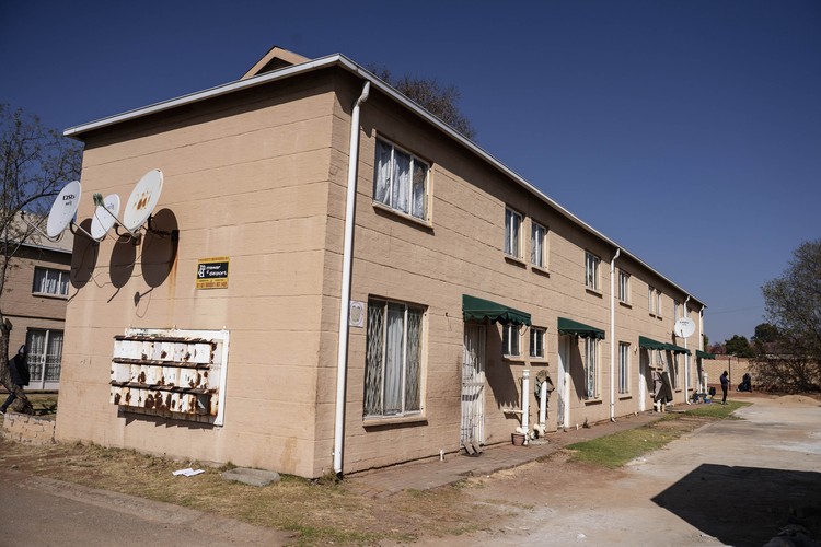 ...Johannesburg Social Housing Company (JOSHCO) flats in Kliptown, Soweto on Wednesday. Photos: Silver Sibiya Tyres and rubble were torched in the streets outside the Johannesburg Social Housing Company...