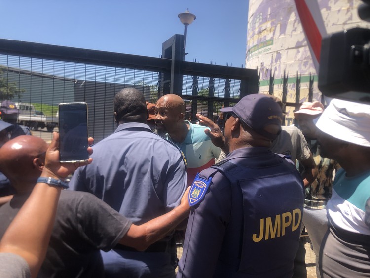 ...Johannesburg to restore services. While the hearing was taking place, residents who remained at home said armed, private security personnel broke down doors to their flats and manhandled occupants, at...