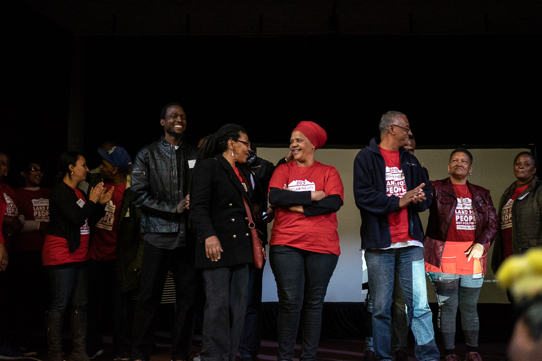 “We are not occupiers. We are tenants,” said a speaker, Belinda Diedericks, who lives in Woodstock and has been active in Reclaim the City. “The worst part was having little knowledge about what to do and where to go when you’ve been evicted. This campaign educates us about the law, our rights and what a legal eviction looks like.”