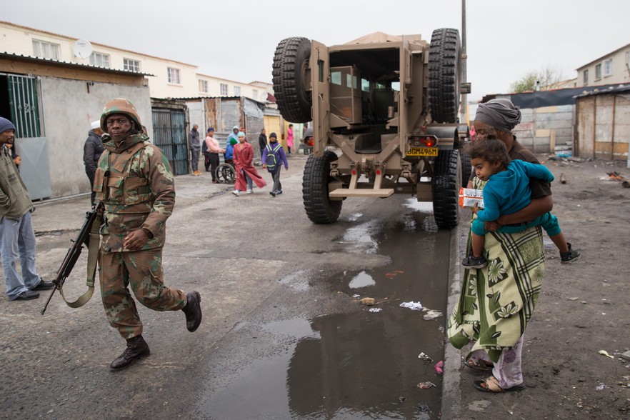 South African National Defence Force (SANDF) have been deployed to the Cape Flats to help the police quell gang violence. All photos and video: Ashraf Hendricks