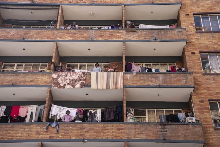 Residents of Hillbrow came out onto their balconies to view the parade as it passed by.