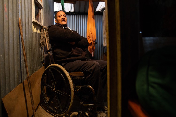 Ashley Cornelius uses a wheelchair. He has been staying in Blikkiesdorp for almost a decade.