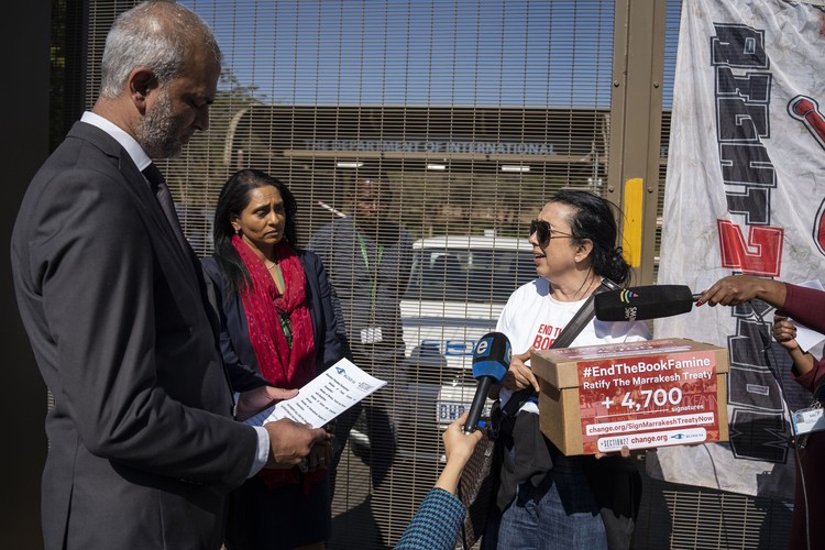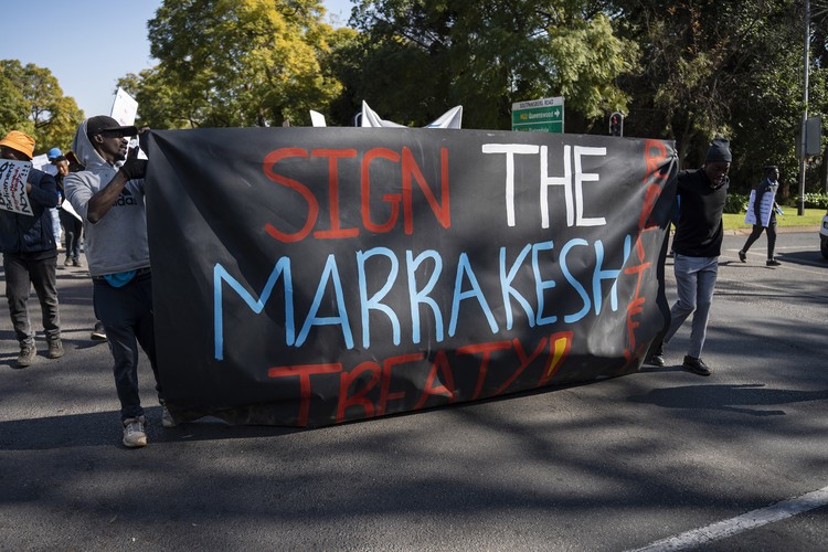 Demonstrators are giving the government a month to respond to their demands which include ratifying the Marrakesh Treaty.