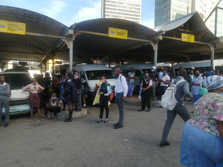 Scores of commuters were left stranded on Tuesday when nearly 2,000 taxi owners and drivers protested in Gqeberha (Port Elizabeth) city centre over their UIF/TERS funds. Photo: Mkhuseli Sizani
